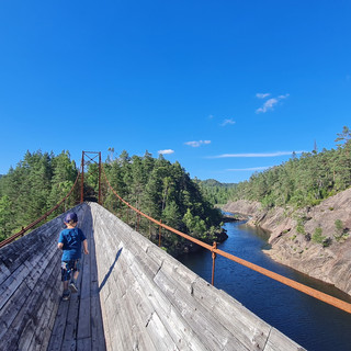Irgendwann wurde es uns zu voll und so sind wie am späten Nachmittag zur Flößerrinne Tømmerrenne aufgebrochen. In dieser wurden früher Baumstämme transportiert. Jetzt kann man auf ca. 4km in der Rinne entlanglaufen. War eine schöne kleine Wanderung (insgesamt ca. 8km), bei der wir auch an einer alten Steinstraße und den Überresten eines Wasserkraftwerks vorbeikamen. Die Wanderung hat sich echt gelohnt!